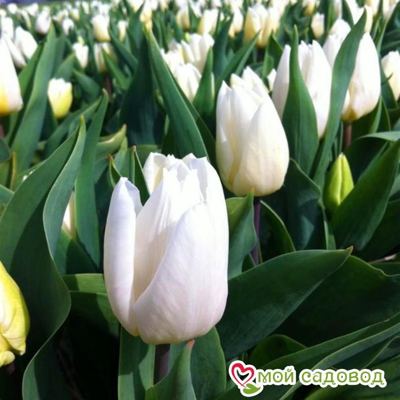 Белоснежный тюльпан, расцветает в апреле.Продолговатые белоснежные бокалы яйцевидной формы Впечатляет своими крупными цветами,устойчив в дождливую погоду.Принадлежит к сорту простые ранние.