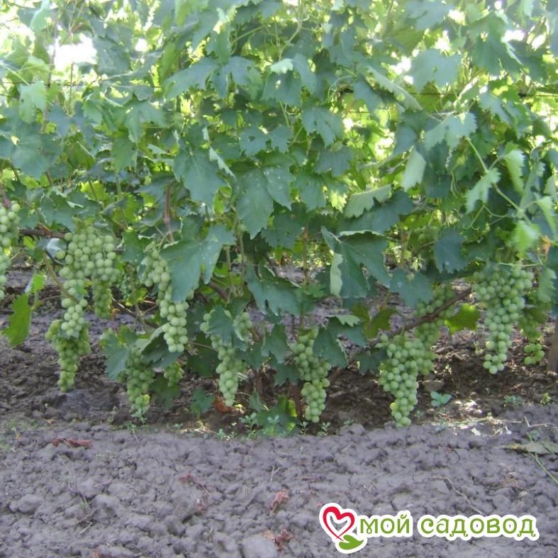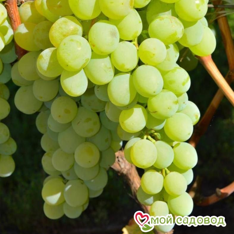 Виноград Антоний Великий – гибридный сорт, созревающий за 130 дней. Благодаря сильным кустам, грозди очень плодородные. Ягоды большие, янтарно-зеленого цвета округлой формы. Структура ягоды плотная, мясистая. Вкус – насыщенный, с нотками муската. Магазин Мой Садовод, рекомендации по уходу Уход за виноградом сводится к регулярным поливам в сухую погоду, подкормкам и формированию куста. Для подкормки используют минеральные и органические удобрения (перепревший навоз, компост). Ранней весной кусты виноград поливают полным минеральным удобрением, растворенным в воде, перед цветением такую подкормку повторяют. Перед созреванием вносят фосфорно-калийные удобрения, а после сбора урожая проводят подкормку калием для повышения зимостойкости растений. Кроме того для лучшего вызревания лозы рекомендуется удаление пасынков и прищипывание верхушек в начале сентября. Формирование куста Винограда. Для формирования виноградных кустов необходимо установить надежную опору. Самая простая представляет собой два столба с несколькими рядами проволоки между ними. По мере роста побеги подвязывают к проволоке, задавая им нужное направление. Формирование куста винограда начинают с первого года, оставляя не более двух здоровых побегов у основания, остальные выламывают. На второй год на кусте оставляют по три почки на каждом побеге, на третий год на каждом плече оставляют 2-3 сильных побега, остальные удаляют. Пожалуйста, помните, что транспортировка и пересадка — стресс для растения. Перед высадкой в открытый грунт обработайте корневую систему стимулятором роста. С заботой о растениях, Мой Садовод. Вы можете купить саженцы винограда Антоний Великий в нашем интернет магазине недорого с доставкой на дом. Так же вас возможно заинтересуют другие сорта столового винограда: виноград кодрянка и виноград лора. Если есть вопросы звоните. В нашем интернет-магазине вы сможете купить Столовые сорта Так же возможно вас заинтересуют Виноград Новочеркасский красный и Виноград Юлиан